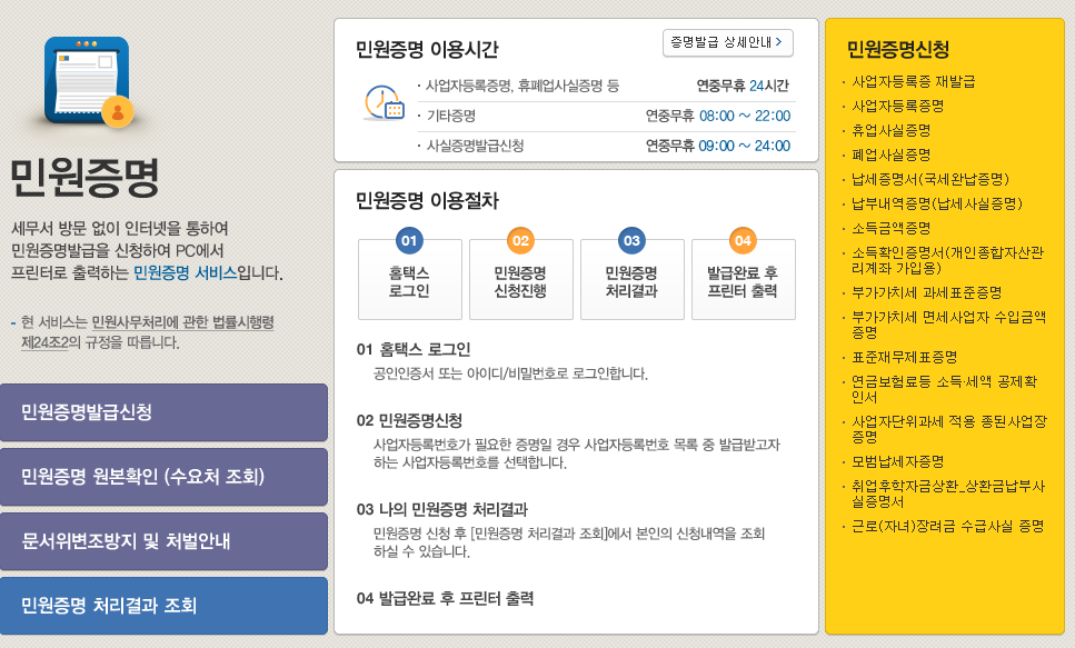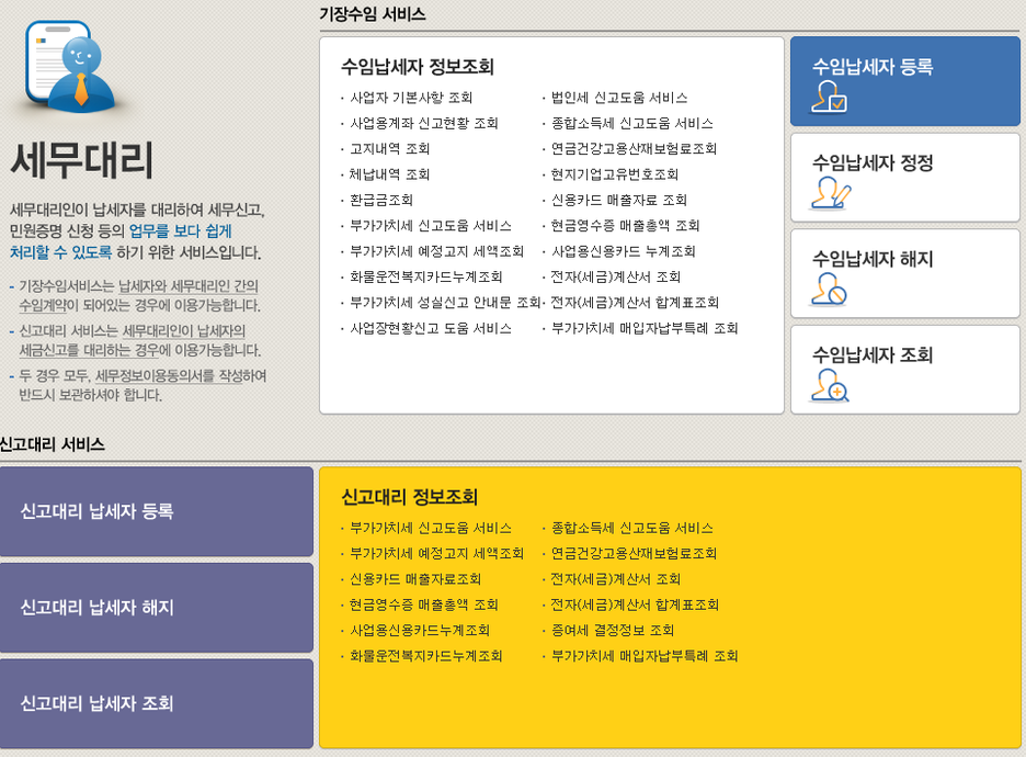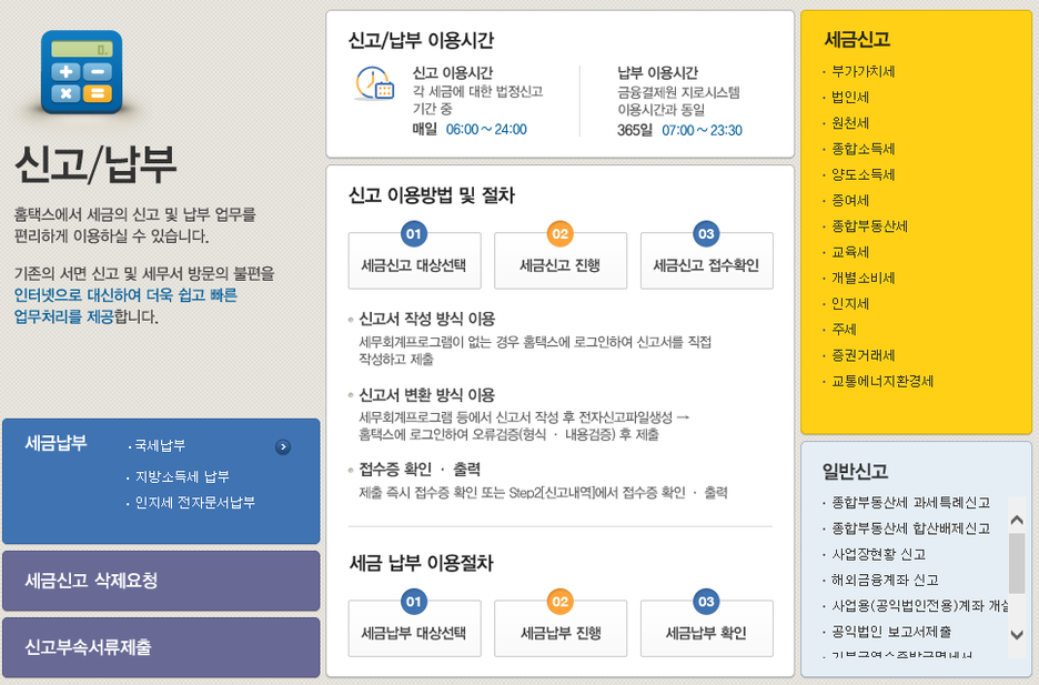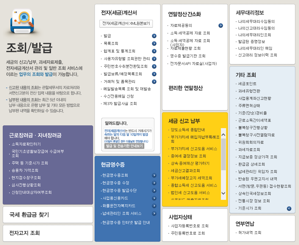 홈택스의 주요 내용을 알수 있습니다