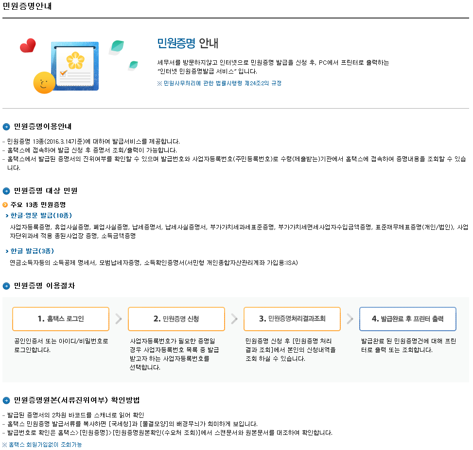 (홈택스)민원증명안내