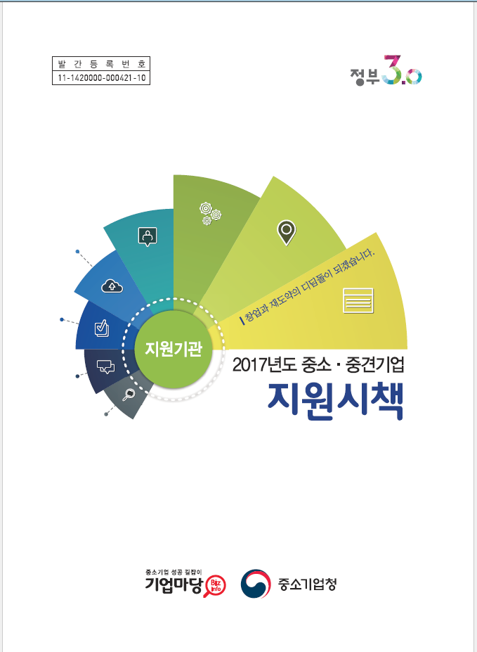 중소기업청에서 발간한 2017년 중소중견기업 지원시책을 담은 책자입니다