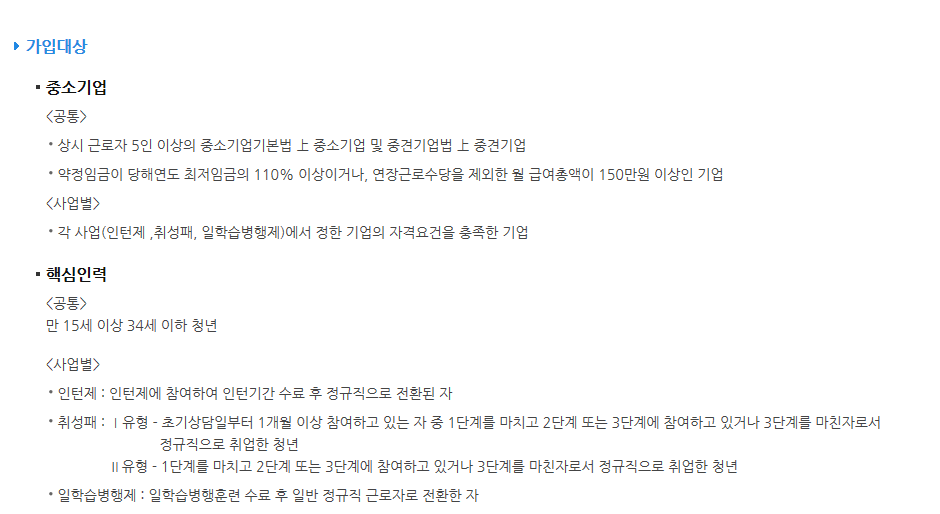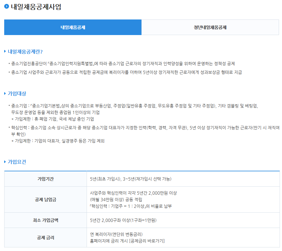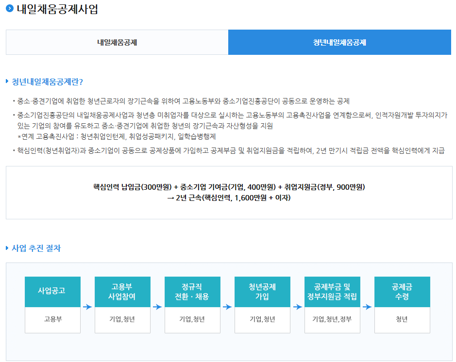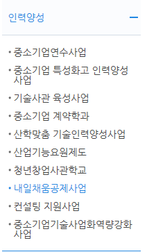 지원사업(인력양성) 중 내일채움공제사업을 예로 듭니다